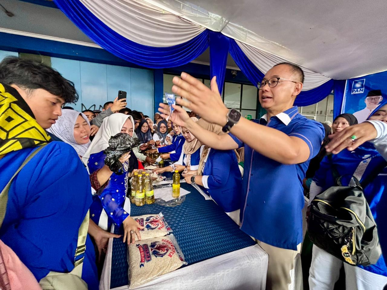 detakpublik, CIANJUR – Ribuan warga dari berbagai wilayah memadati kegiatan pasar murah Bahan Pokok Penting (Bapokting) yang digelar Dewan Pimpinan Daerah (DPD) Partai Amanat Nasional (PAN) Kabupaten Cianjur. Kegiatan yang berlangsung di Kantor DPD PAN Cianjur tersebut digelar untuk membantu meringankan kebutuhan masyarakat selama menjalani ibadah puasa di bulan suci Ramadhan.